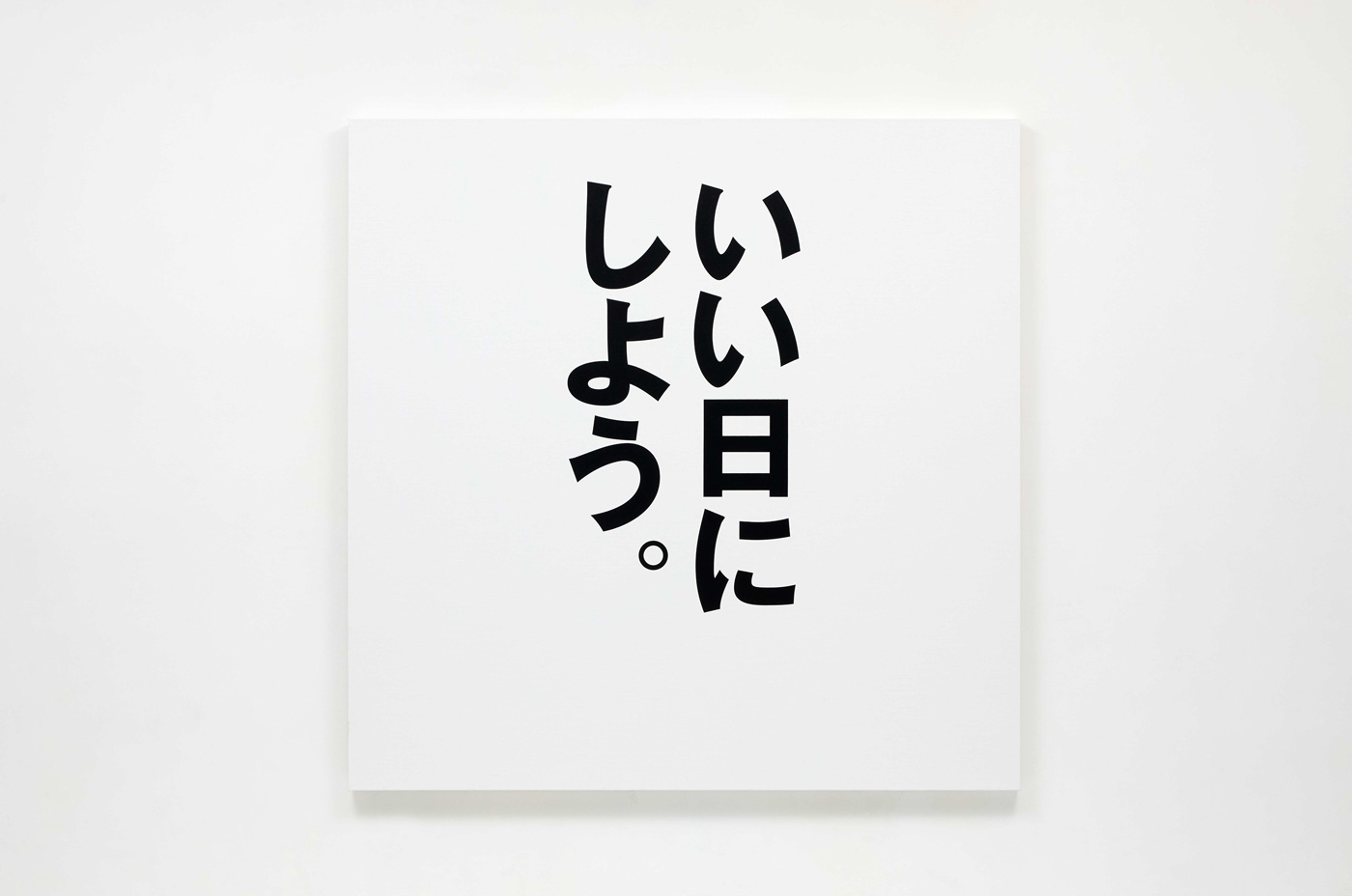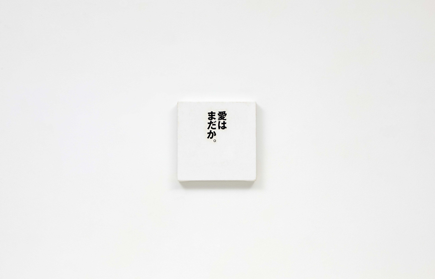 テキストと文体の軽やかさを反復し、文脈から切り離された言葉が視覚的快楽として立ち上がるこのスタイルは、コンセプチャルアートの旗手として言語を主要なメディアとして作品を発表してきたローレンス・ウィナーの手法とも重なります。同時に、日常に流通する記号をそのまま作品化するイチハラヒロコならではの感覚は、より広い文脈へと開かれているように思います。イチハラの作品で埋め尽くされたSAIの空間は、Xをスクロールしているかのような感覚を呼び起こし、広告や情報であふれる渋谷の風景を想起させます。誰もが公共に向けて言葉を発信できるようになった現在において、言葉は「伝えるもの」から「消費されるもの」へと変質しました。それでも感情を帯びた言葉はなお私たちを翻弄し、乾いた都市空間のなかで内的風景を映し出します。