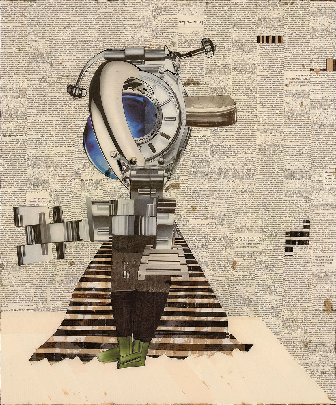727mm × 606mm, Collage and pen on wood board with frame, 2021