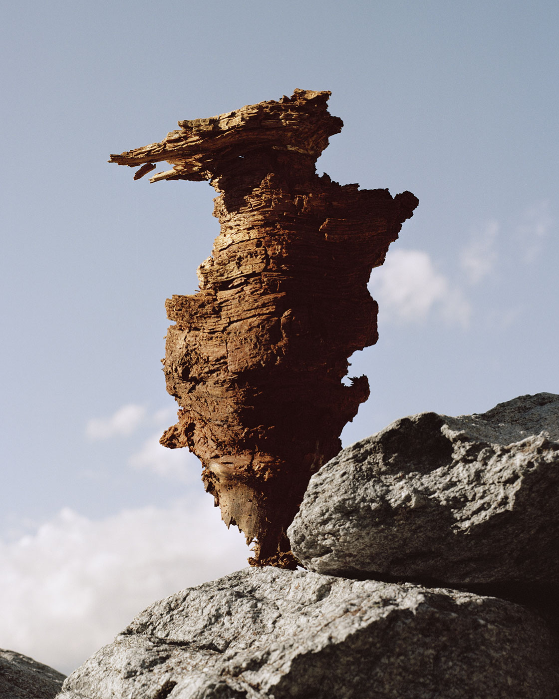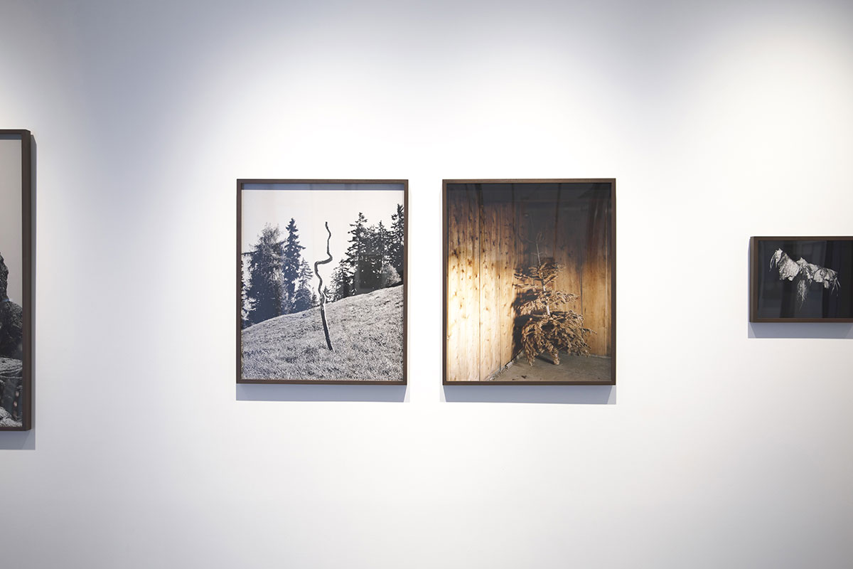The first, titled Greppon, presents a selection of 30 images from his project of the same name. The photographs were taken in Wallis, near the Veysonnaz region of Swtizerland over the past five years. The series stems from the desire to explore the mythology tied to the natural and alpine environments, kept alive in the mountain villages by the older generation, whilst also capturing the desire to escape the oppressive sense of stagnation that forms in these remote areas. The series oscillates between fiction and documentary; echoing the way in which myths are formed through the distortion of reality that transforms objects into symbols. Though these images capture the beauty of the natural environment, they are also tinged with existential fear, the weight of time, and the anxiety of death that accompanies personal and sometimes fraught relationships with an environment or place full of personal experiences.