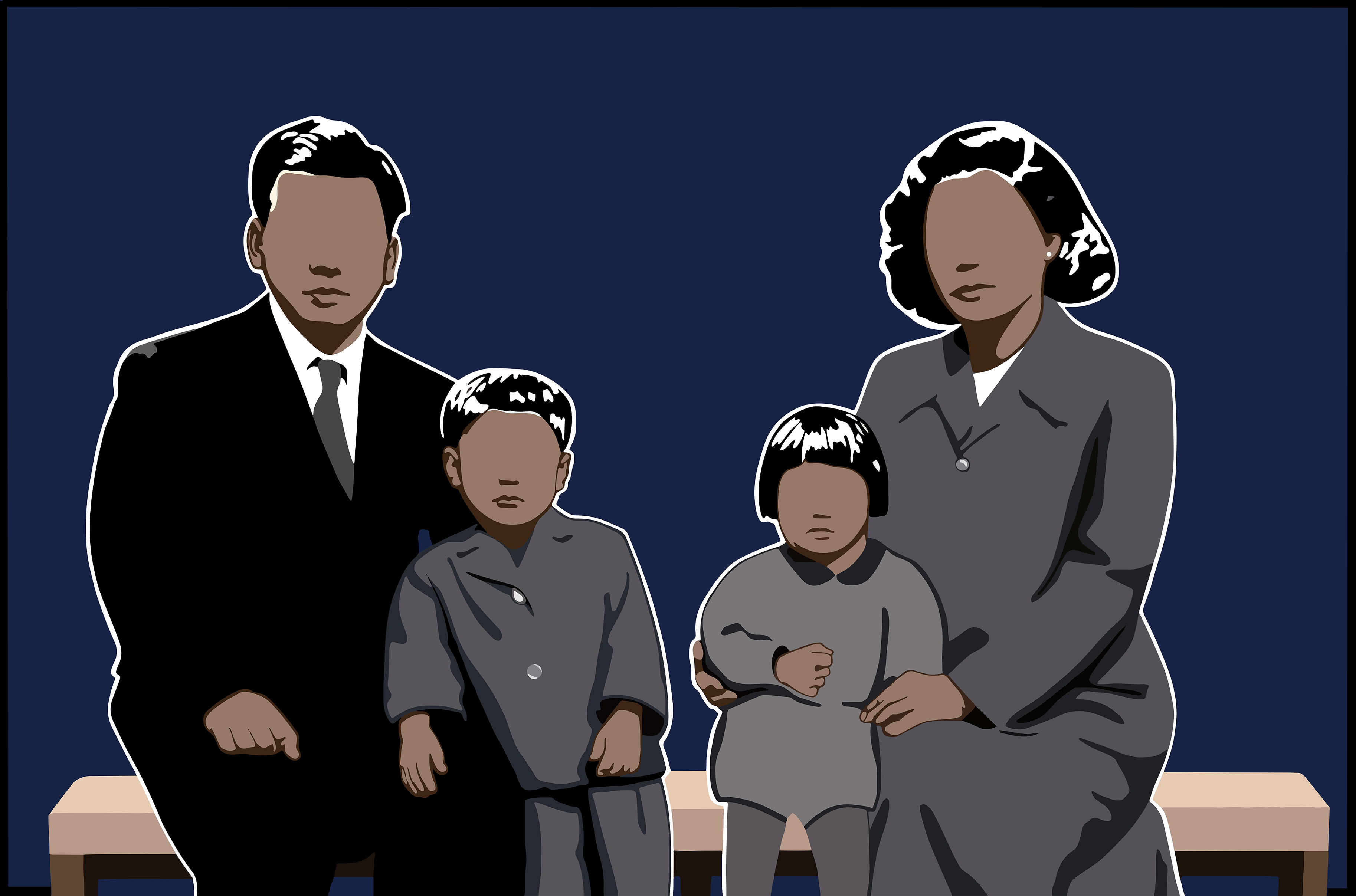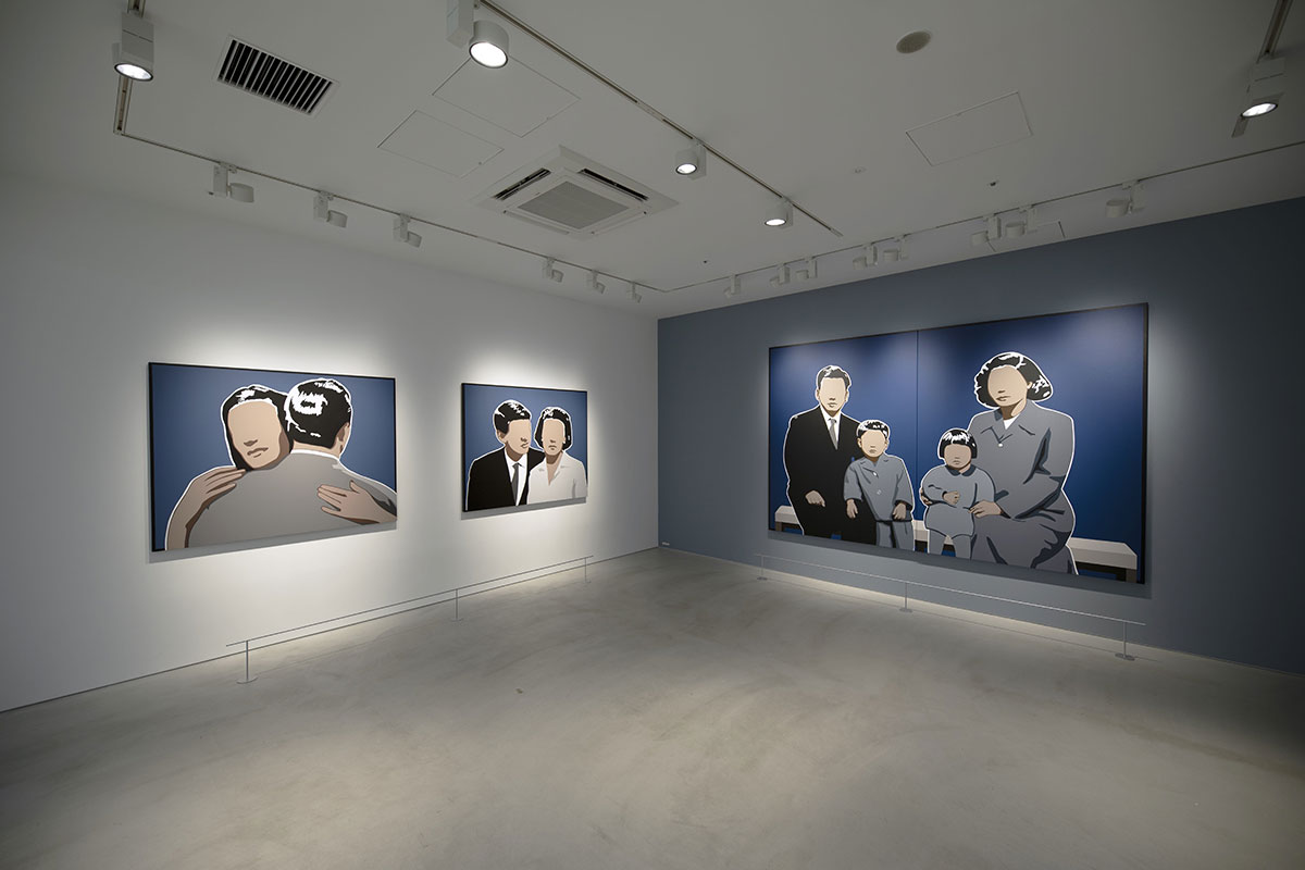 主に表情を読み解く上で大きな役割を持つの「目」を描かず、対象をグラフィカルに描くスタイルも彼女の言うアイデンティティの不在を強調する役割を果たします。表情を抜き取られた作中の登場人物は、過去ポップアートが継承してきた大衆性や視覚的インパクトを体現し、それと同時に情報社会の下、相対でのコミュニケーションが困難になりつつある現代的な匿名性の相関も感じることもできます。