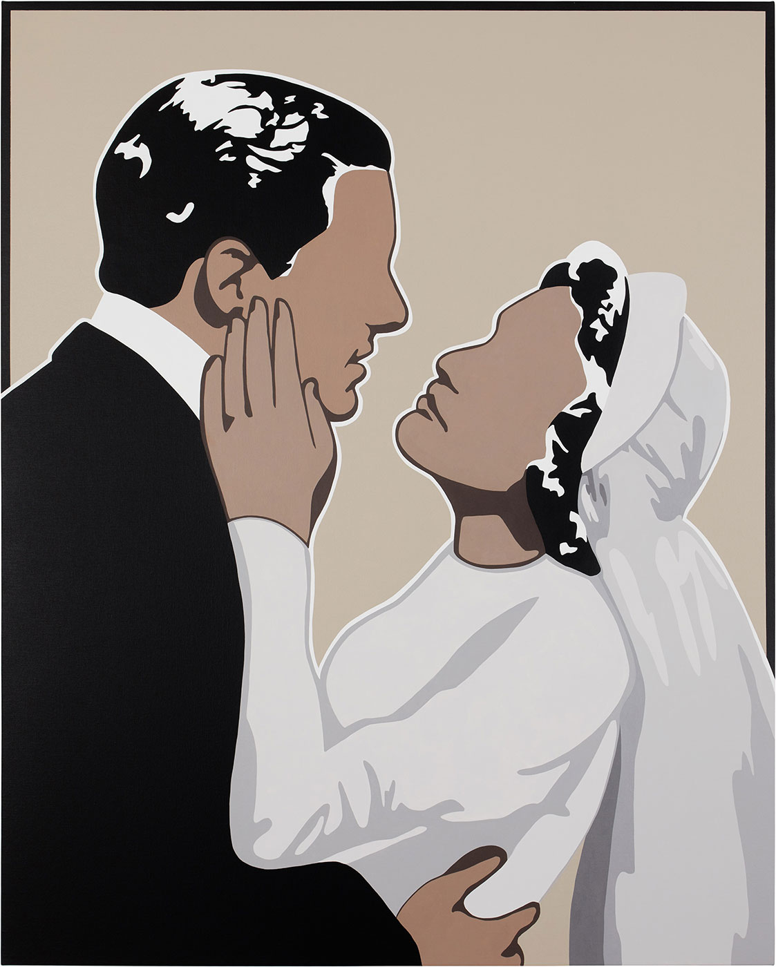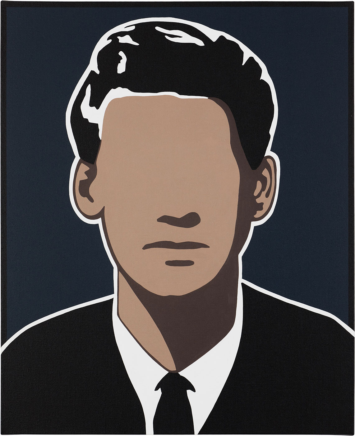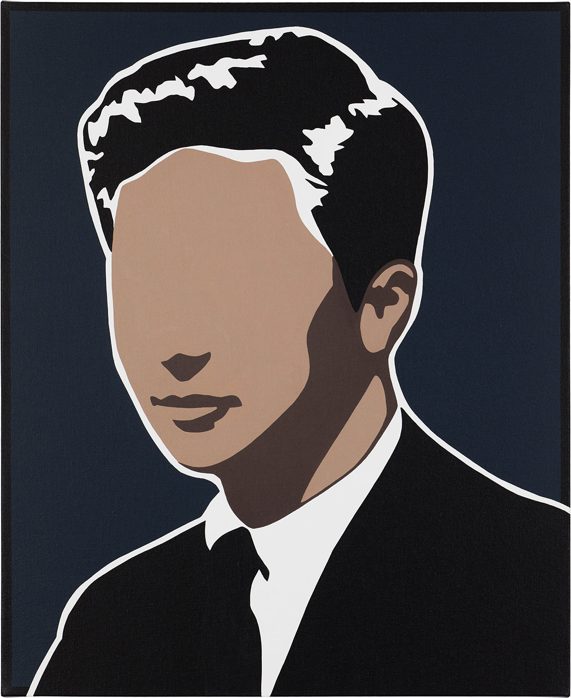 The graphic way in which she renders her subjects and the deliberate choice to not depict the eyes of her figures, a facial feature that plays a significant role in the deciphering of facial expressions, serve to emphasise the absence of what Oliver calls ‘identity’ . The characters within her works, with their expressionless faces, embody the mass appeal and visual impact inherited from Pop Art, whilst simultaneously correlating with the anonymity of our contemporary information society, in which respective communication is becoming increasingly difficult.