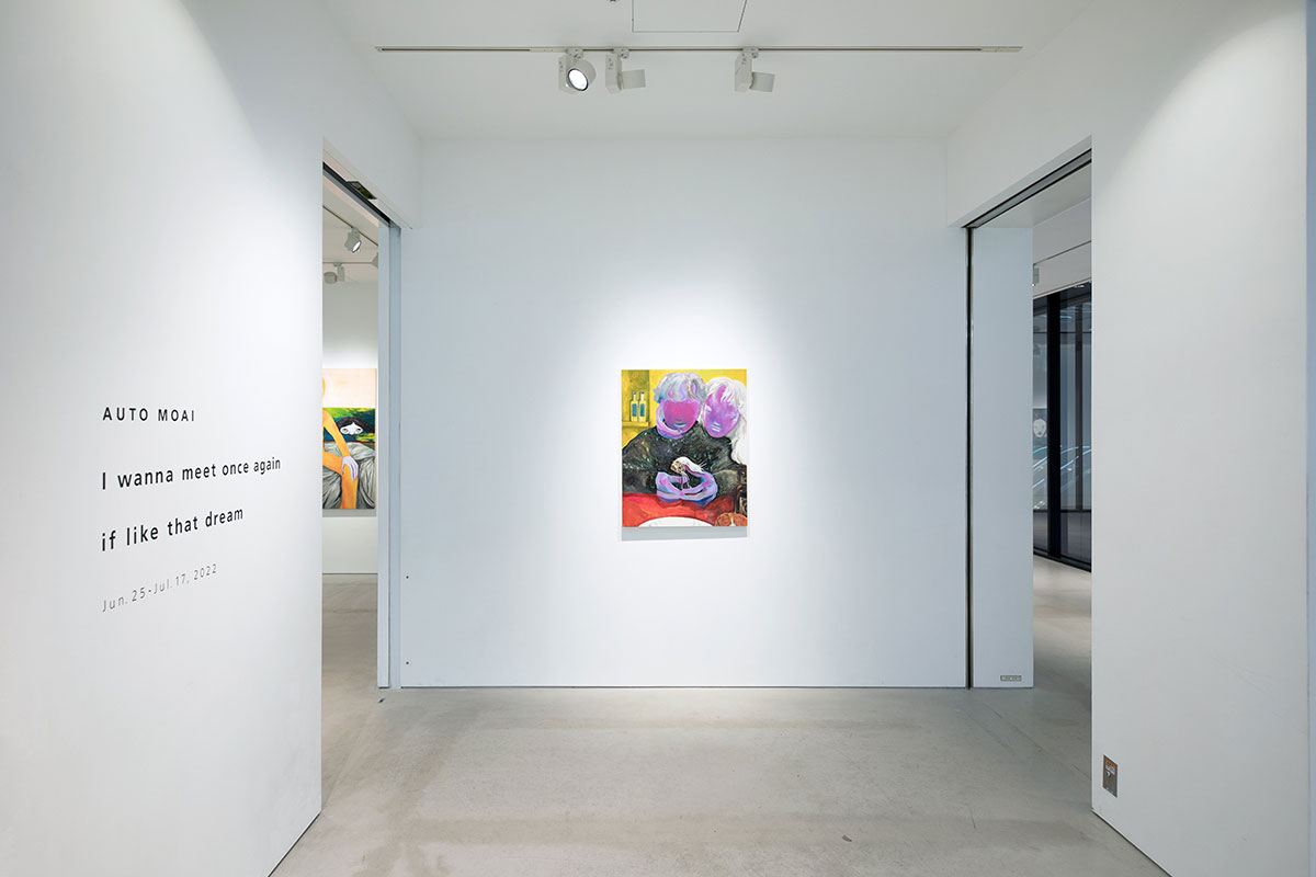 The dream referenced in the title ‘I wanna meet once again if like that dream’ shares a similar position to AUTO MOAI’ s concept of painting, and is equal to or equivalent to memory. These can be seen as an existence that crosses between the obscure and the obvious or as images that transcend logic, place and time. The works of AUTO MOAI invite the viewer to interpret painting in a new and unprecedented way, as a raw catalyst with an uninhibited sense of reality, whilst clad in an air of fantasy.