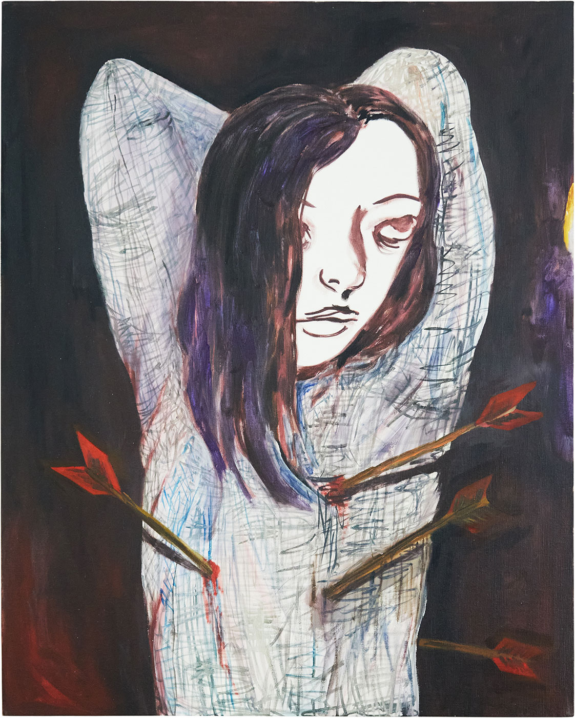 これまで、国内外様々なスペースで異なるテーマを用いて作品を発表してきたオートモアイ。本展はペインターとして、絵画自体を時間を超越することのできる装置と捉えた上で設けられた「記憶の中の霊性」というテーマの元、制作が行われました。本テーマは絵画表現により描かれるモノへの考察にあります。何世紀も前に描かれた絵画と対峙した時の、自分が生きている時間軸以外の世界へアクセスしたような感覚と、自分自身の記憶を遡る感覚。それらが酷似していると感じたオートモアイは、絵画つまり記憶を不確かでも確かにそこにある存在として、霊の存在を重ね合わせ、まるで降霊術を行うかの如く制作に励みました。